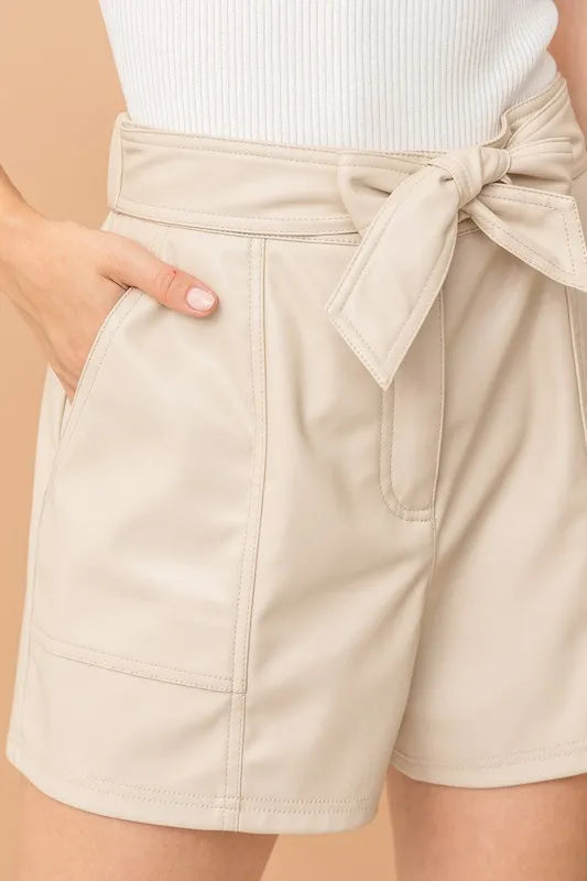 Lessivo Faux Leather Paperbag Shorts with Ribbon