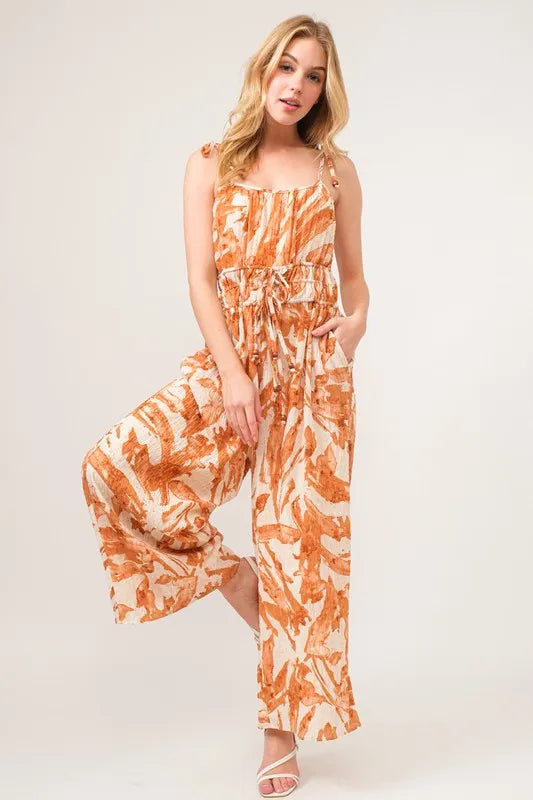 Lessivo Abstract Print Wide Leg Jumpsuit