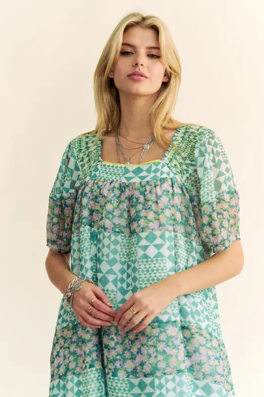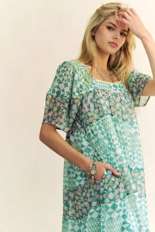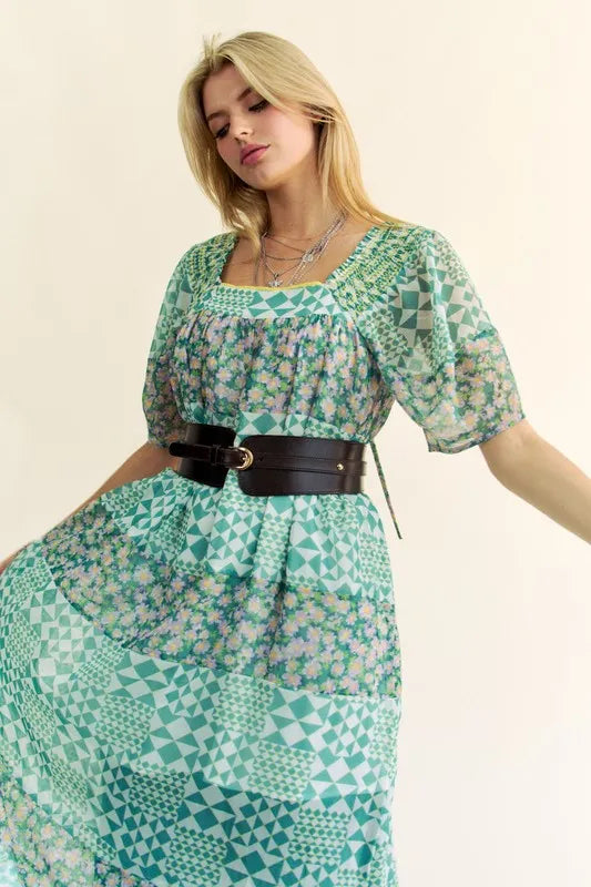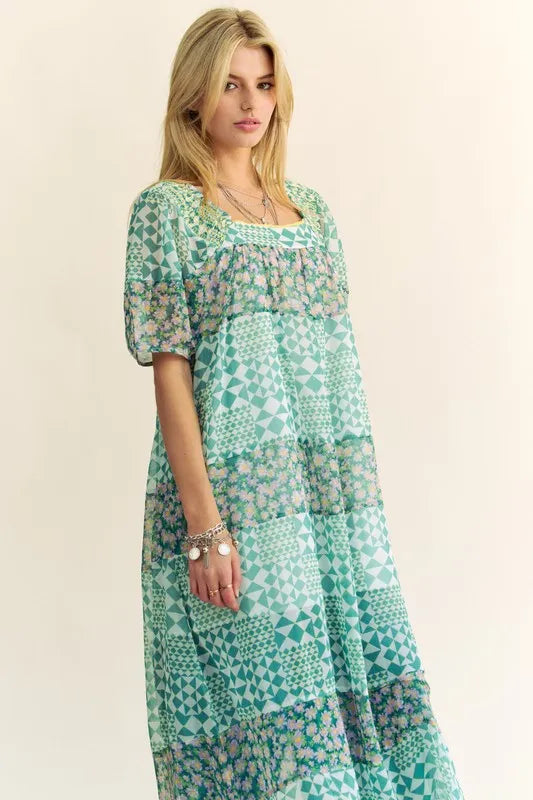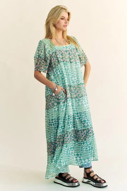 Lessivo Floral Puff Sleeve Maxi Dress