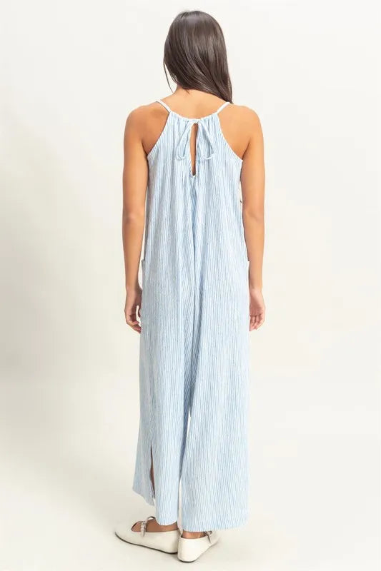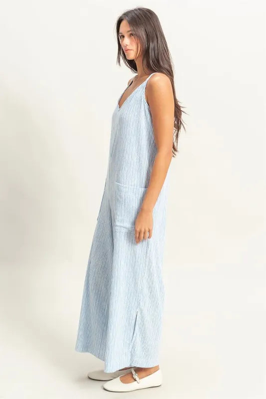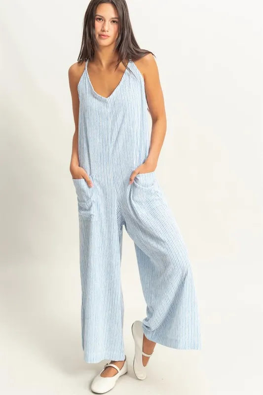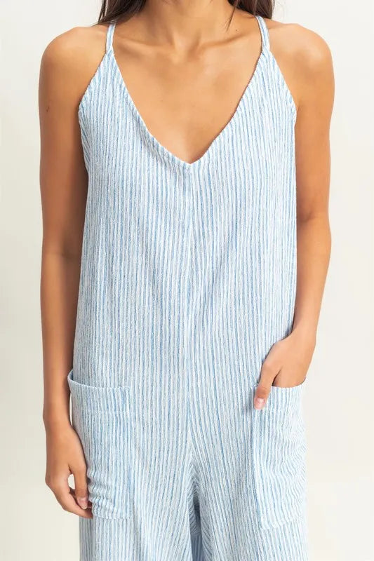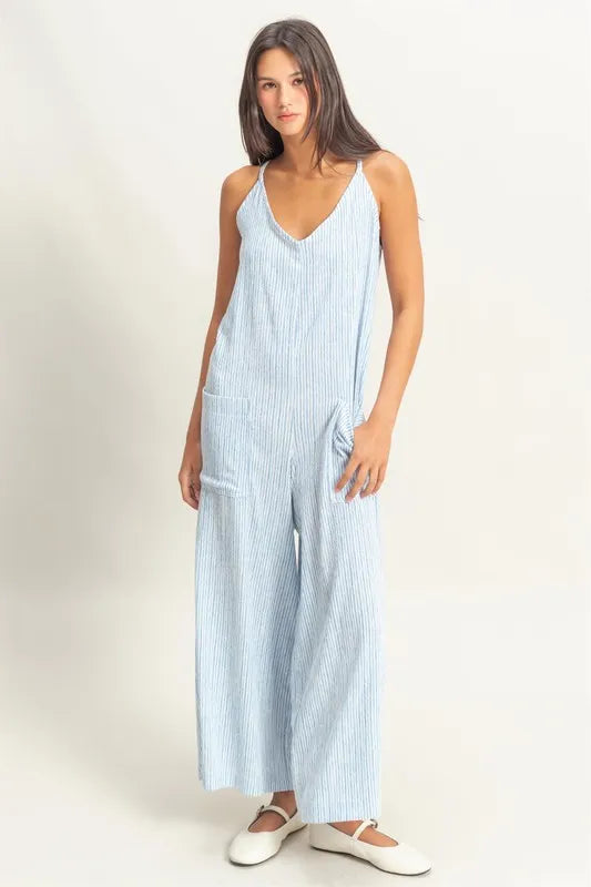 Lessivo Striped V-Neck Sleeveless Jumpsuit