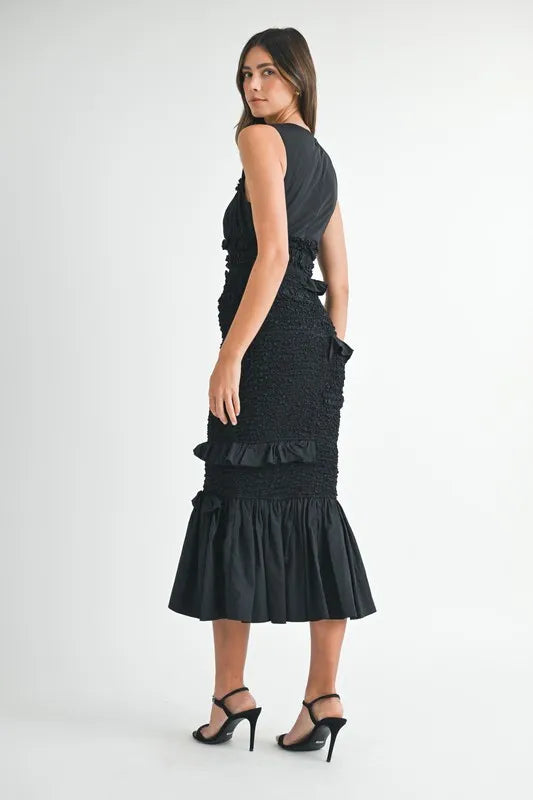 Lessivo Ruffled Popcorn Smocked Mermaid Midi Dress