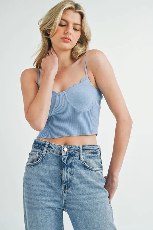 Lessivo Scalloped Edge Ribbed Knit Cami