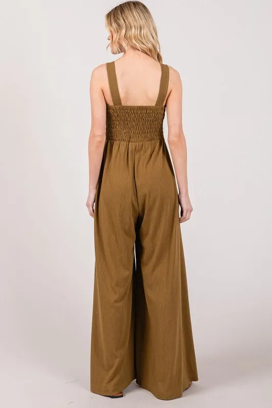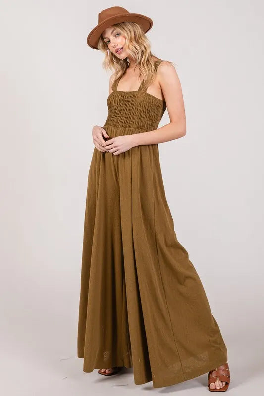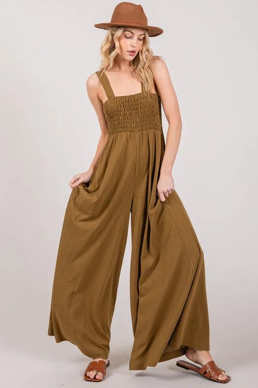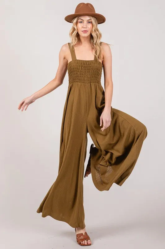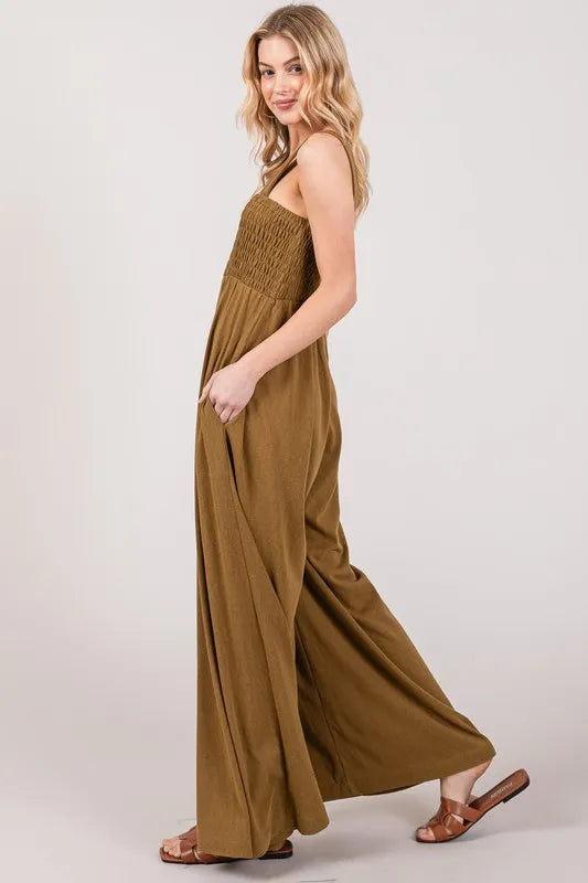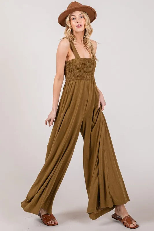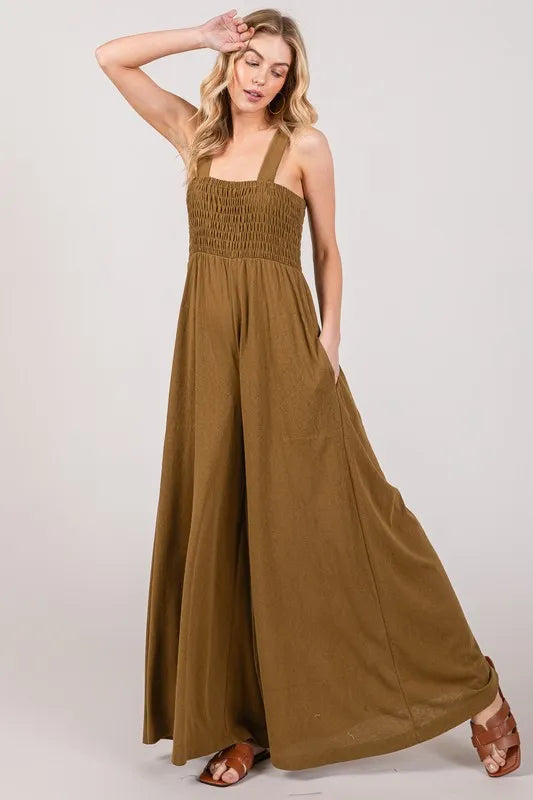 Lessivo Smocked Flowy Wide Leg Jumpsuit