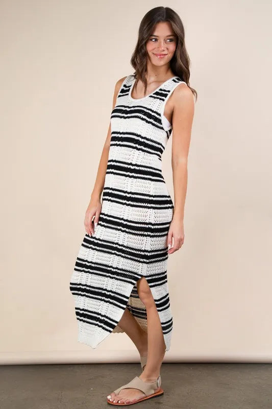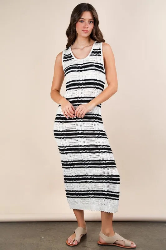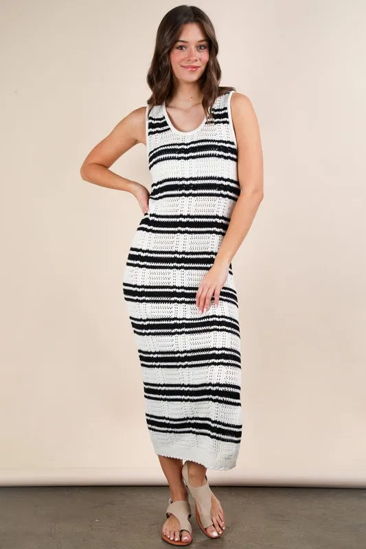Lessivo Stripe Knit Casual Sweater Midi Dress